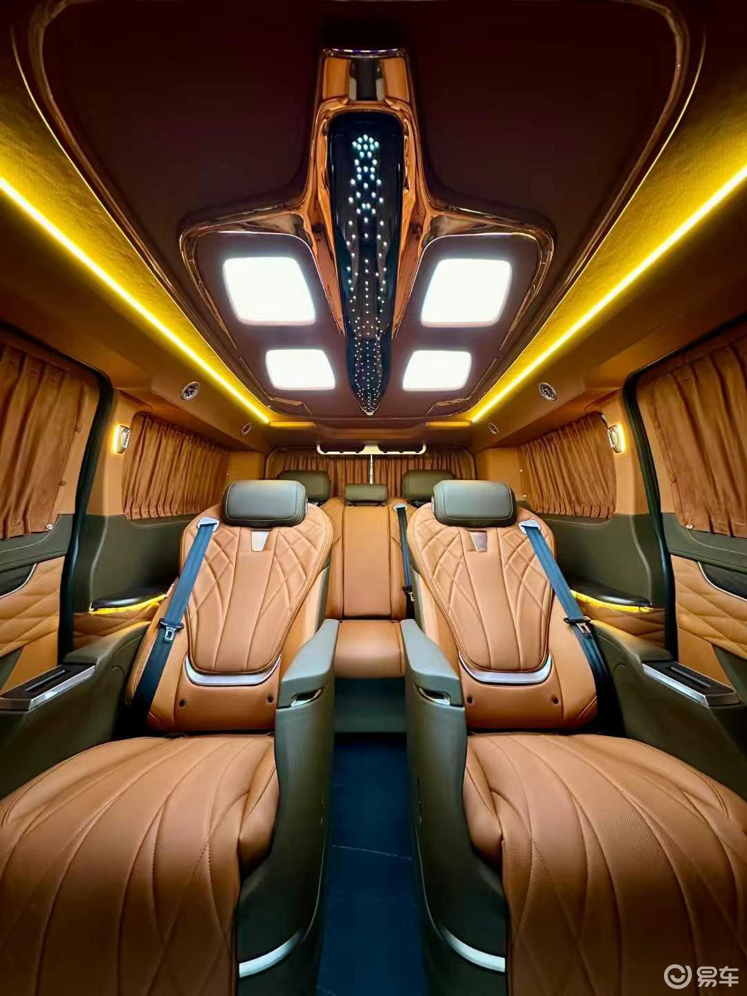 商务舱中央两个超级豪华的航空座椅,共有8项的电子主动调节,还带有腿托通风加热按摩等各种舒适配置。同时这款车子上配有多方位的无线充电,还带有各种的USB接口。按摩也是人体工程学6点位智能气动按摩。五种不同的颜色偏好,针对的是不同的个人喜好,喜欢哪种可任意的选择