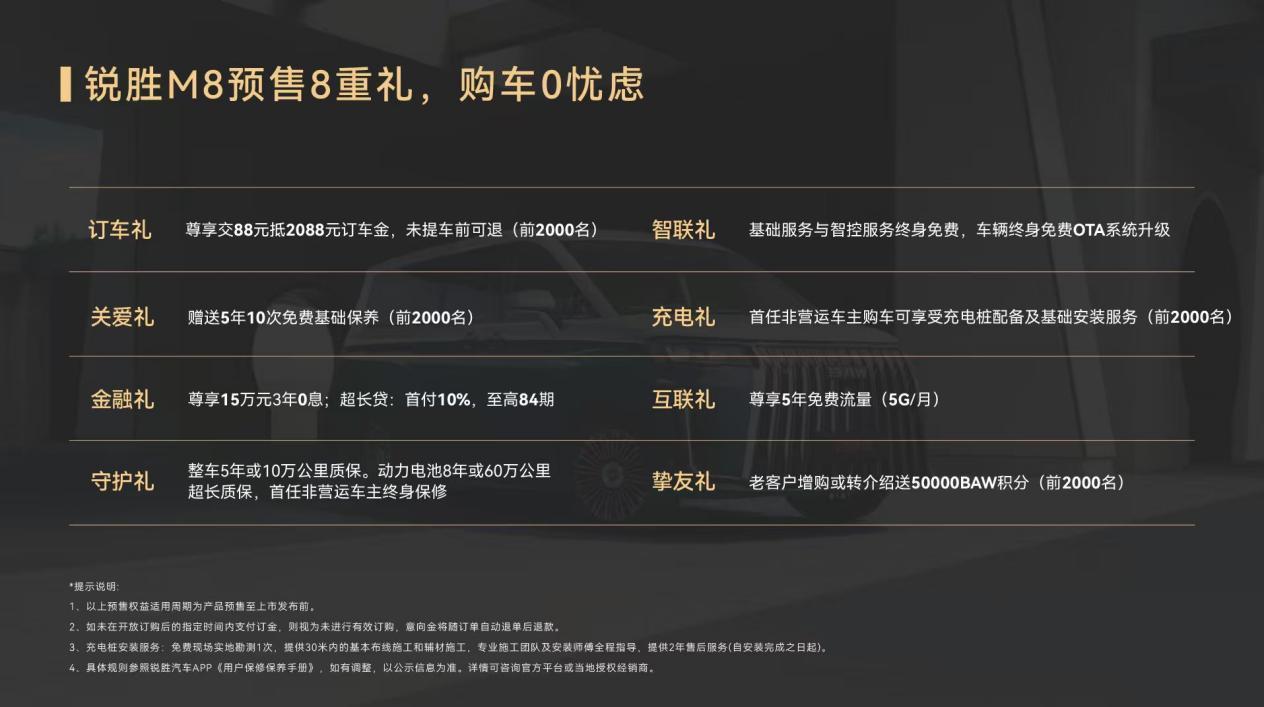 - 锐胜M8开启预售 燃油+增程+纯电,预售16.98万起