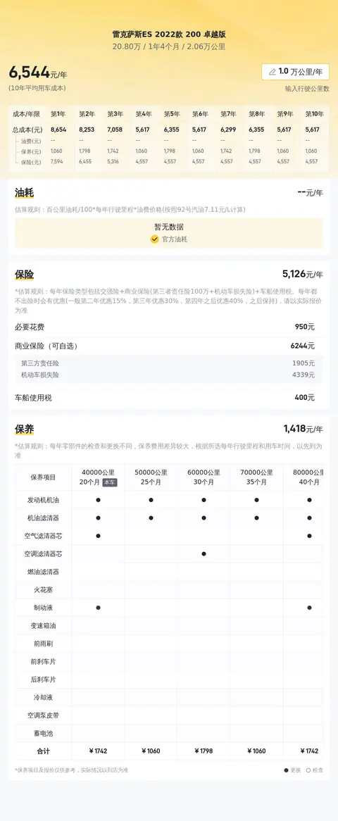 在不考虑其他费用大幅波动的情况下,预估的平均用车成本为4633元/年。实际费用支出可能会因人而异。